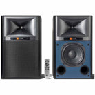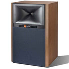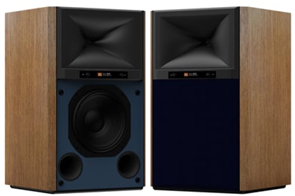 These speakers come in either a black or walnut finish with a full studio monitor look. You’ll get JBL blue grilles with the walnut and black grilles with the black version.