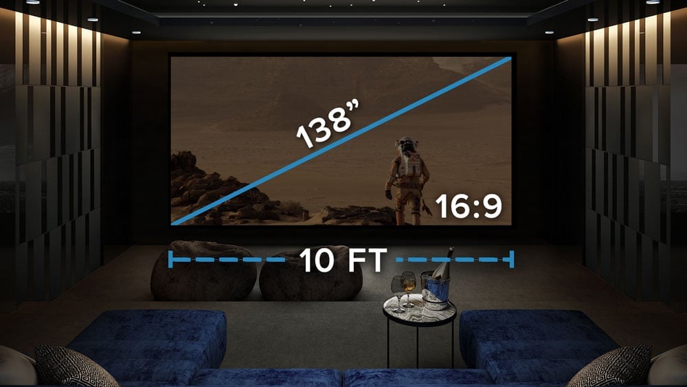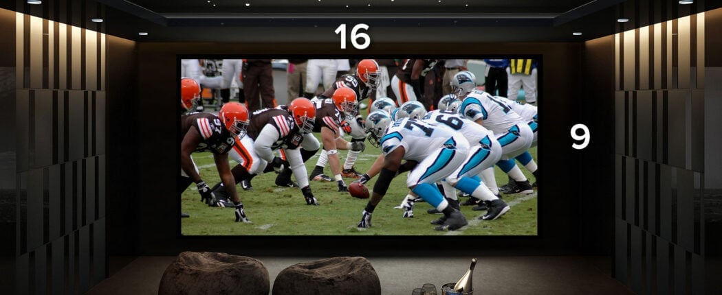 There are a couple of use cases where we recommend a 16:9 front projection system. The first would be if you really enjoyed sports and wanted the image to be as large as possible. This means the screen is going to be pretty tall and a widescreen version of that tall of a screen is going to be huge. You may not have the budget to get a projector that will be able to provide enough light output for 2.40 content and result in a darker image that does not pop. Our experts can work with you to help you determine if this is the case.