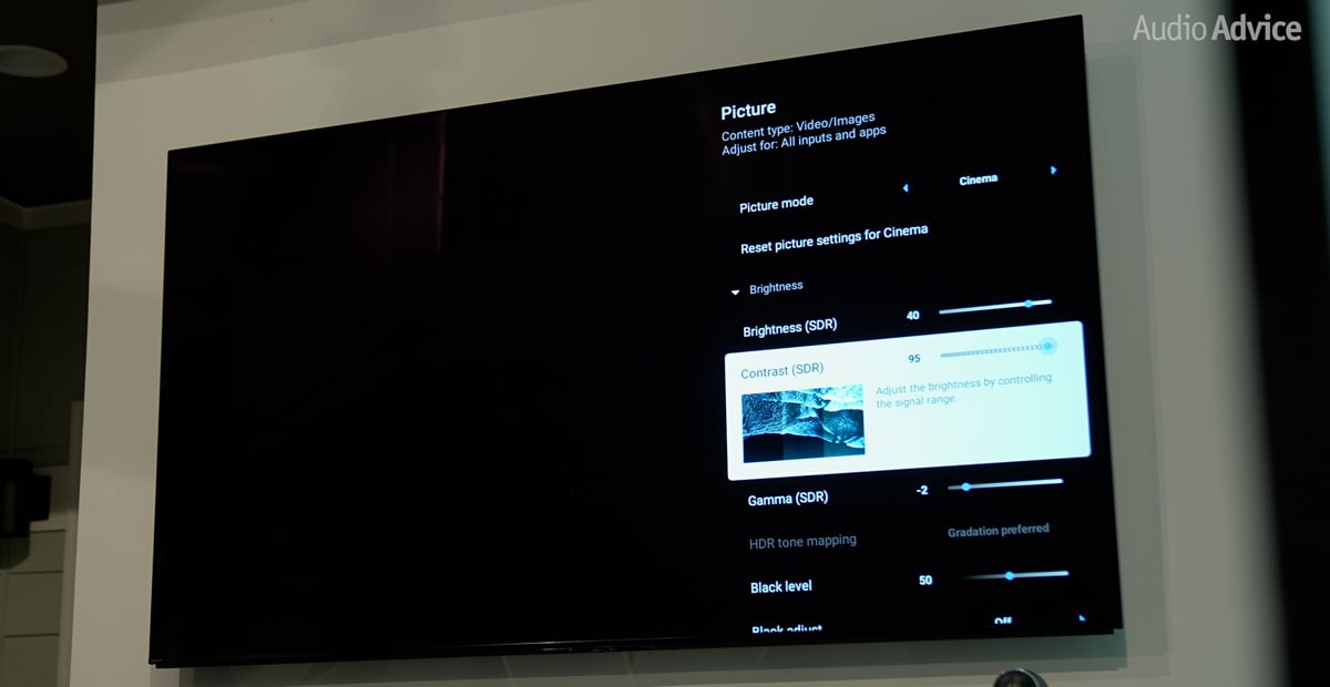 Start by adjusting your Brightness or Backlight settings based on your room’s lighting. On Sony OLED models like the A95L, adjust the Brightness setting (which controls overall luminance) to around 35–40 for bright rooms, or lower it to 20–25 for darker rooms and nighttime movie watching to help preserve deep blacks and reduce eye strain. On Sony LED models like the Bravia 9, adjust the Backlight to around 90–100 for very bright rooms. For home theater-style dark rooms, 40–60 is often a better sweet spot. Some users find 15–25 too dim and it may crush shadow detail in HDR.
