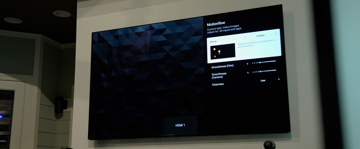 In your Motion Settings, set MotionFlow to Off or Custom. If you choose Custom, reduce Smoothness to zero and leave Clearness on Low. This preserves the natural motion cadence of movies and TV shows.