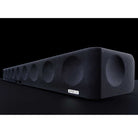 Powered by 13 high-end drivers, the AMBEO can present audio across the frequency range from 30Hz to 20kHz. There are (6x) 4-inch long-throw woofers that will reproduce deep 30Hz bass that only an external subwoofer would be able to produce, and (5x) 1-inch aluminum dome tweeters, plus (2x) 3.5-inch full-range drivers on the top corners cover your room in high-fidelity sound. This gives you 5.1.4 channels of Dolby Atmos and DTS:X 3D surround sound plus a single channel for the sub-bass frequencies — all coming out of just the AMBEO.