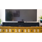 The AMBEO is designed to sit under your TV or it can be wall-mounted with an optional bracket. Dimensionally, the AMBEO stands a little over 5-inches tall with its removable rubber feet. You could purchase the optional wall-bracket for a nice clean professional look, but we think most people will probably just position this under their TV on a piece of furniture. For the best performance, we recommend separating the bar from the TV to give the upward-firing drivers enough clearance. Similar soundbars like the Sonos Playbar and the new Sonos Arc provide a template that helps you position the bar far enough away from the TV.